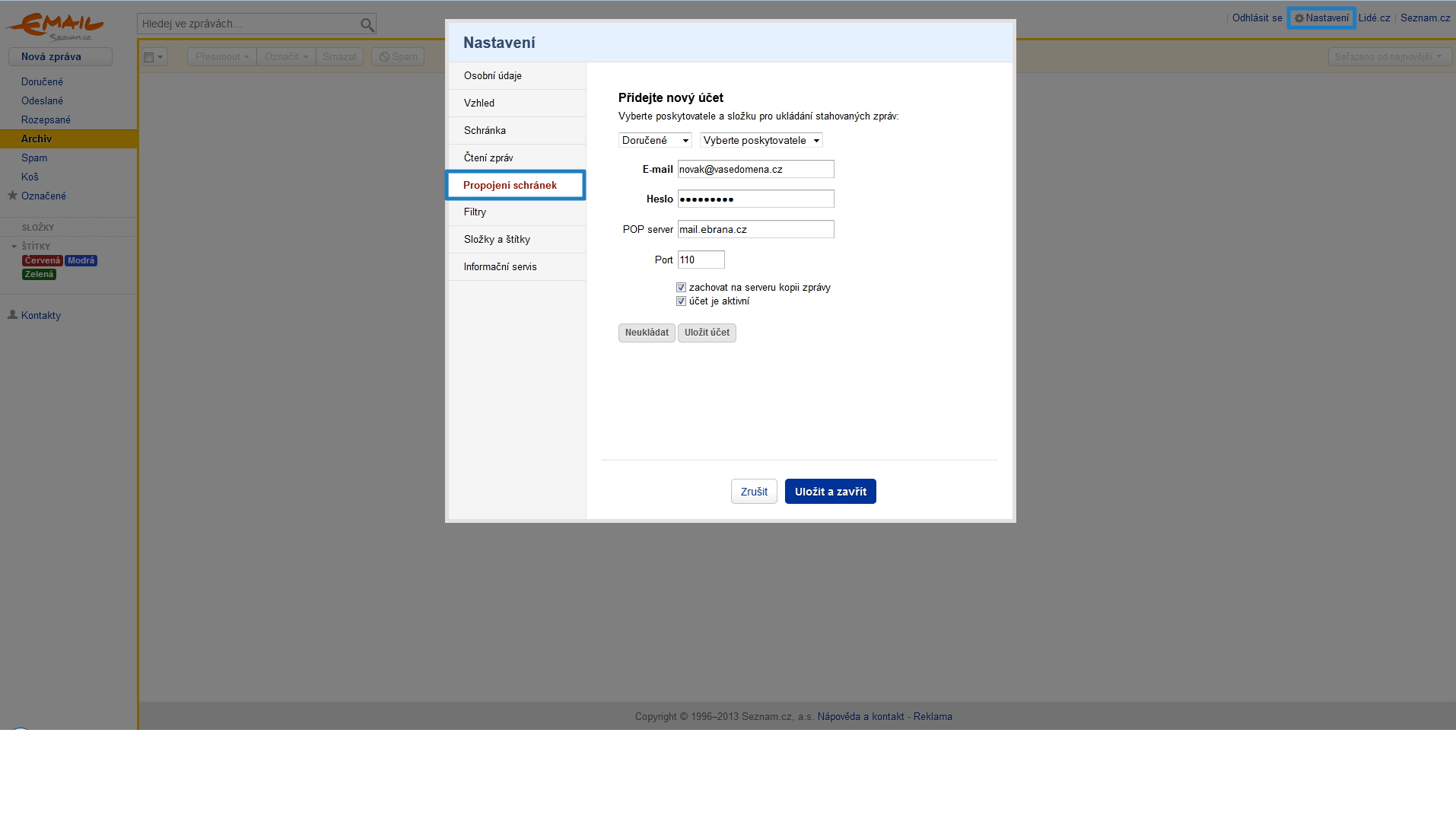 Nastavení propojení schránek je velice jednoduché a dá se zvládnout během pár minut a stejně rychle se dá toto provázání zrušit. Seznam používá společné e-mailové prostředí pro všechny své domény, takže i nastavení je stejné.